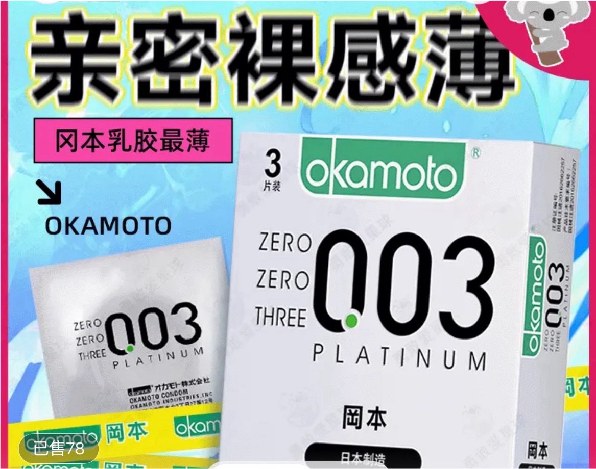 [冈本]003超薄润滑避孕套3片薄至0.03乳胶日本进口安全套